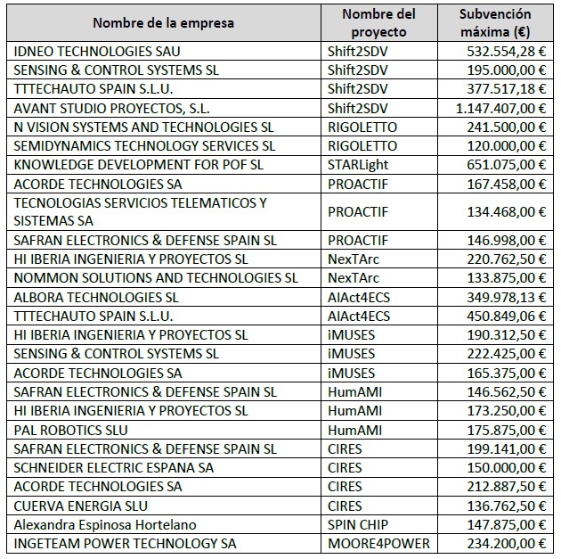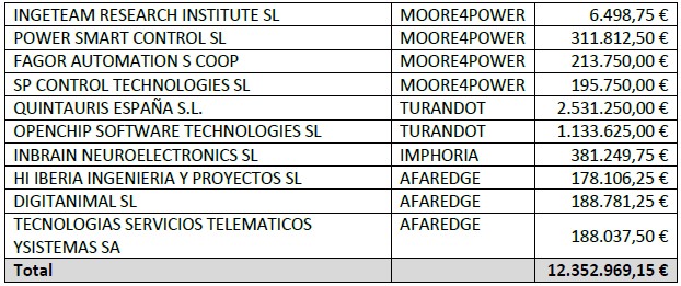 Los 36 proyectos van a recibir 12,3 M€ por parte de España, 13,1 M€ por parte de la Chips JU y en torno a 20 M€ de las aportaciones de las empresas adjudicatarias.