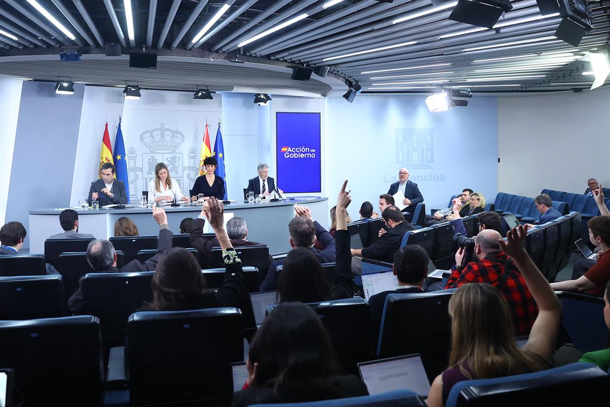 Ministers Carlos Cuerpo, Sara Aagesen, Elma Saiz and Fernando Grande-Marlaska during the press conference after the Council of Ministers | Pool Moncloa/Fernando Calvo