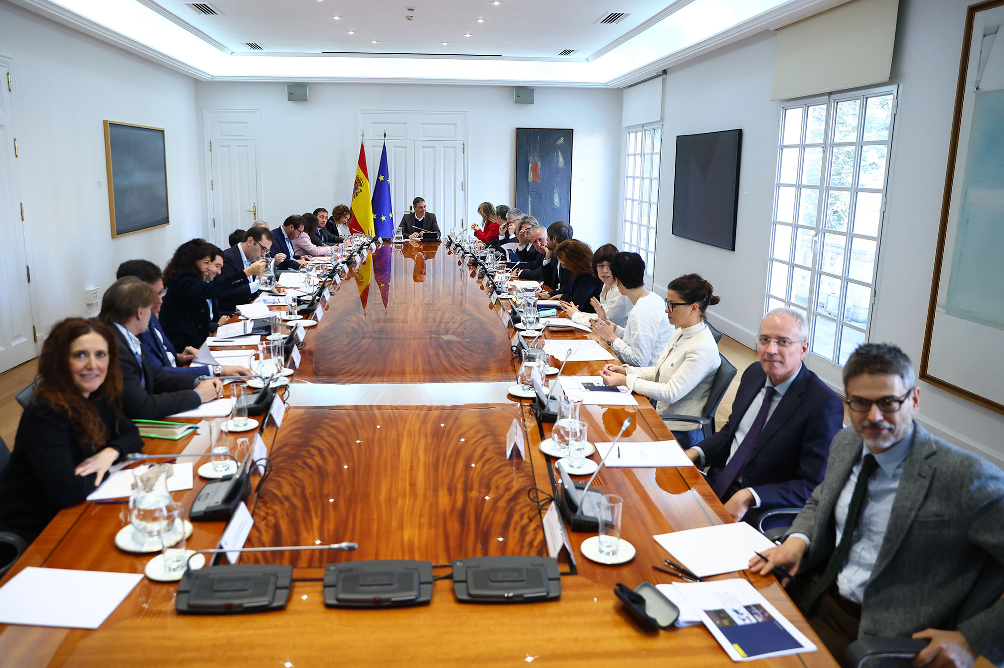 The President of the Government, Pedro Sánchez, together with the members of the Interministerial Commission for Recovery, Transformation and Resilience | Pool Moncloa/Fernando Calvo. 2026.1.7