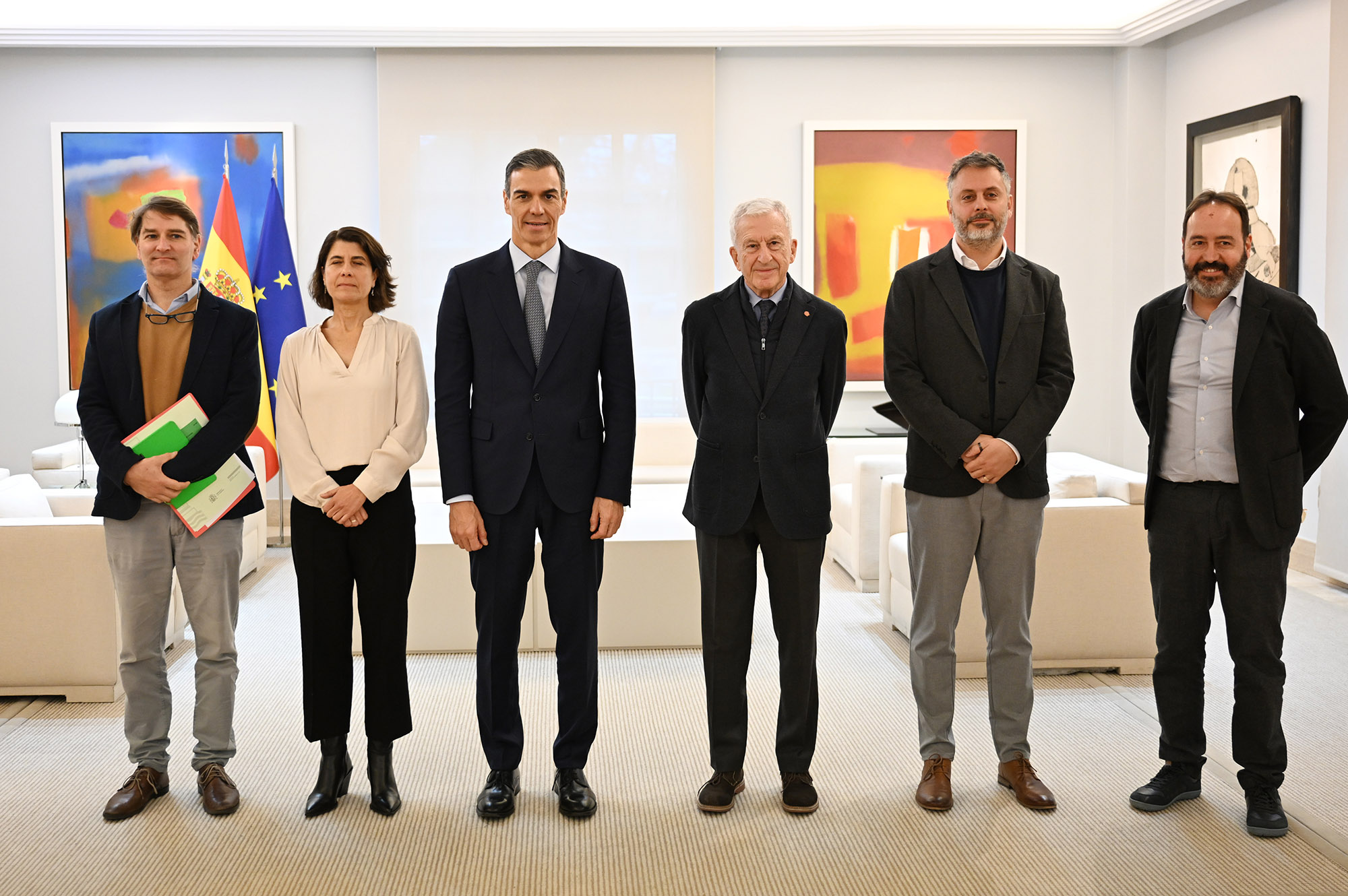 The President of the Government of Spain, Pedro Sánchez, with representatives from Cáritas Spain and the Foessa Foundation | Pool Moncloa / Borja Puig de la Bellacasa. 2026.1.8