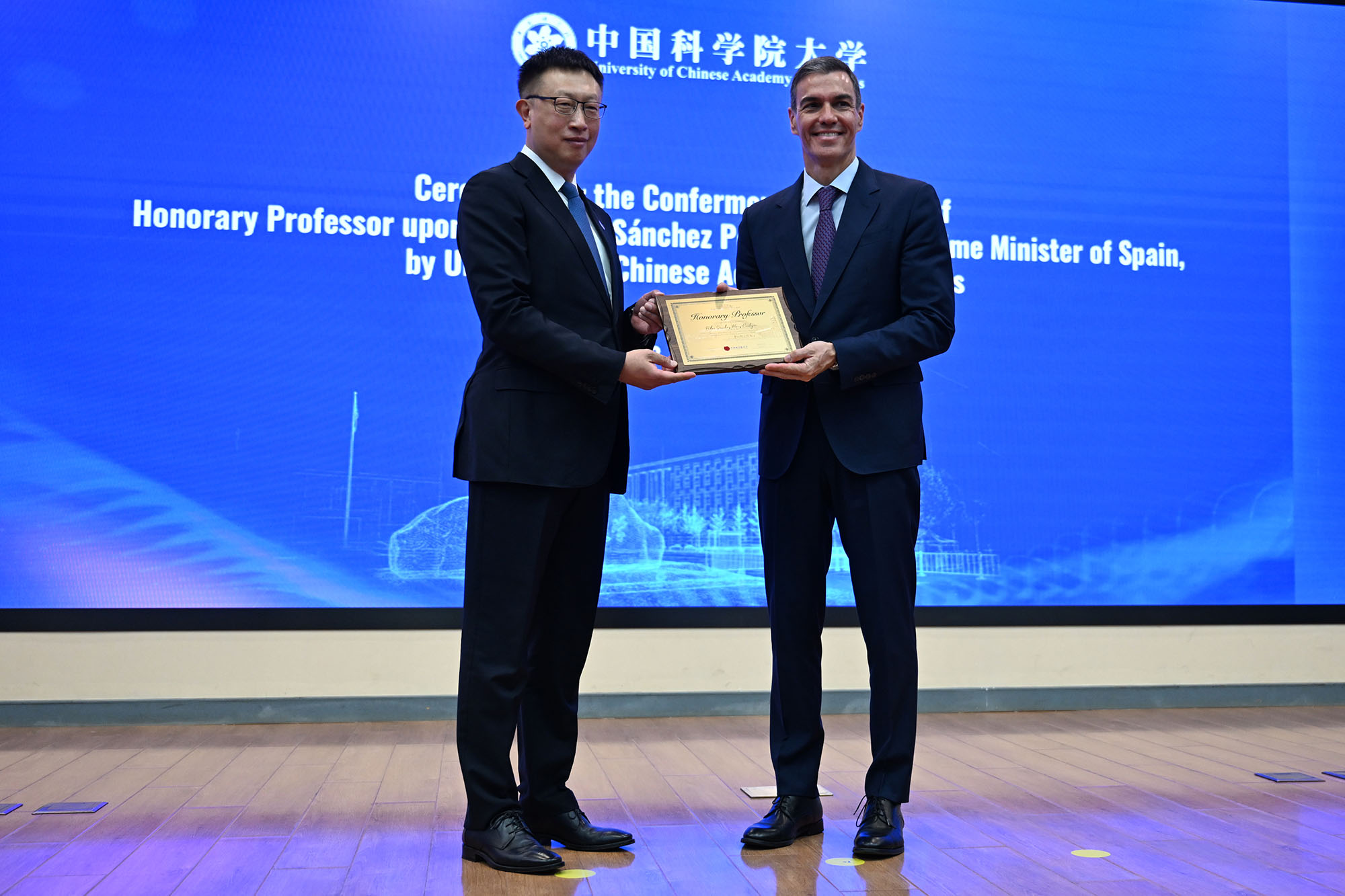 The President of the Government of Spain, Pedro Sánchez, receives the Honorary Chair of the Chinese Academy of Sciences | Pool Moncloa/Borja Puig de la Bellacasa. 2026.4.13