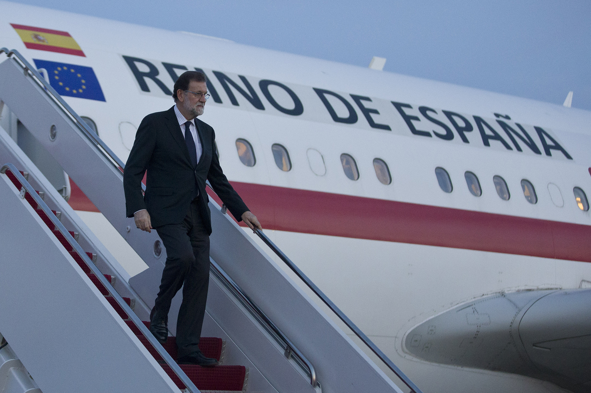 El presidente del Gobierno, Mariano Rajoy, a su llegada a Washington. | Pool Moncloa/Diego Crespo. Base Aérea de Andrews, Washington - 26.9.2017