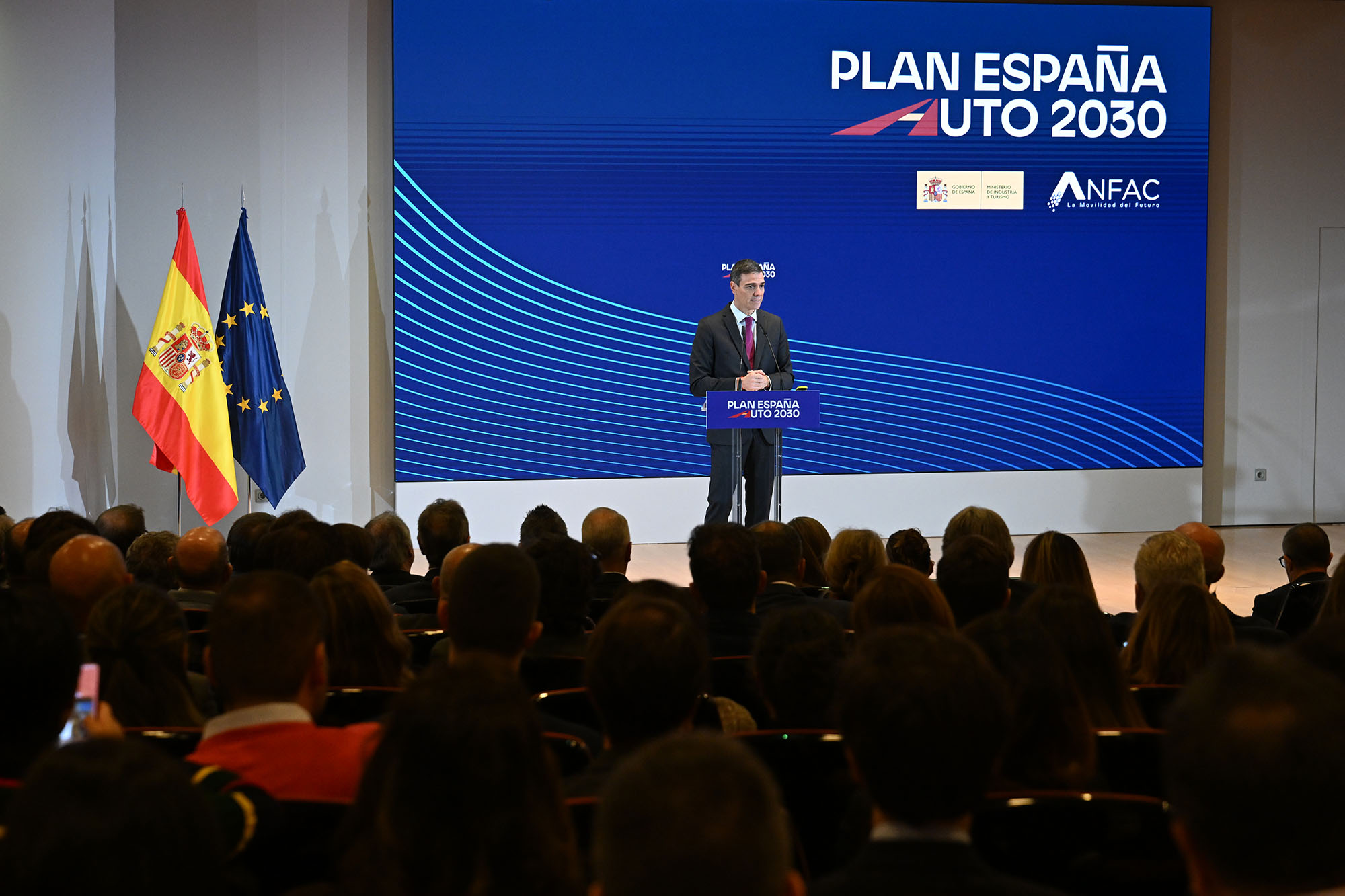 El presidente del Gobierno, Pedro Sánchez, durante su intervención en el acto. | Pool Moncloa/Borja Puig de la Bellacasa. Ministerio de Industria y Turismo, Madrid - 3.12.2025