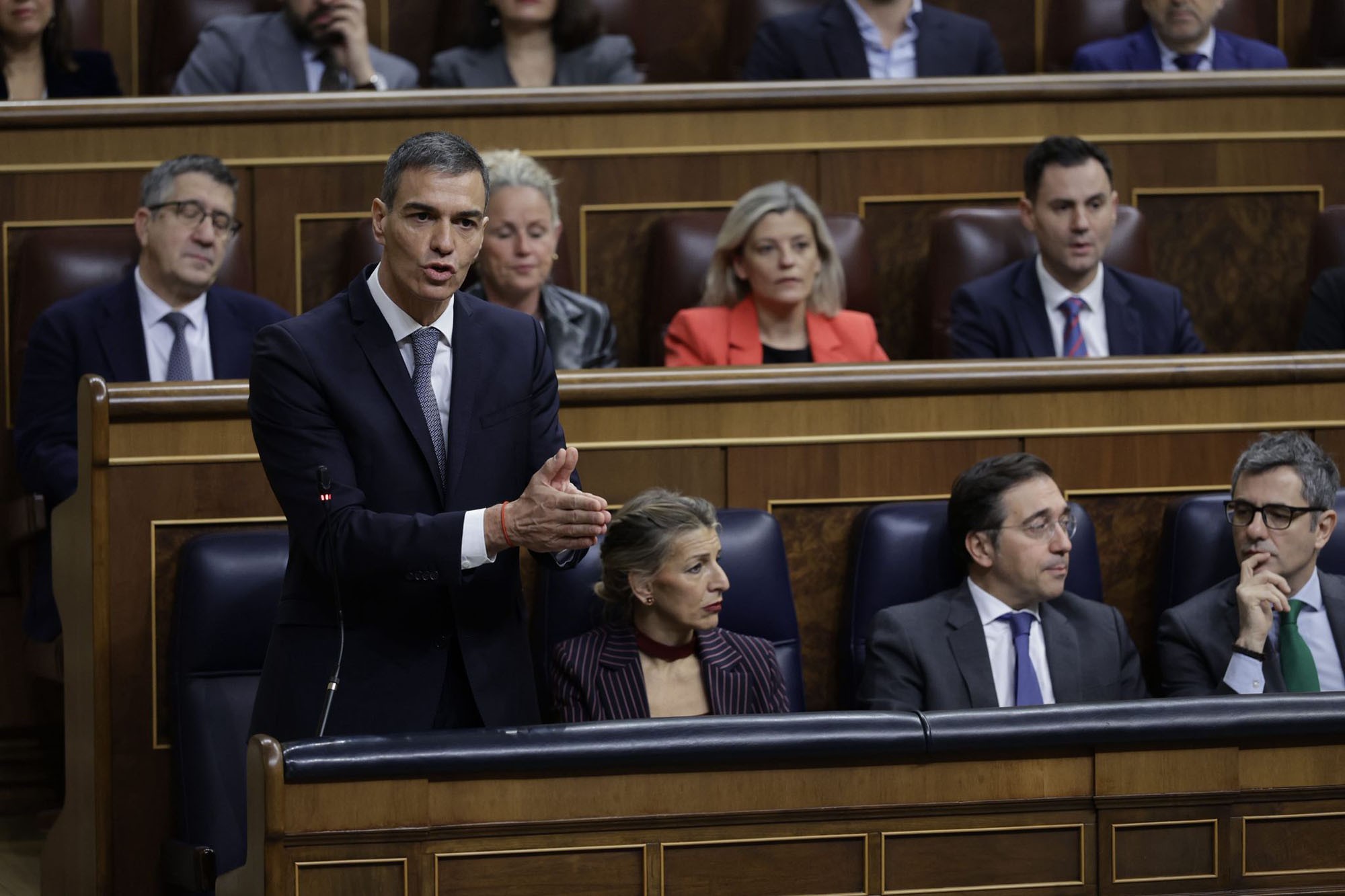 El presidente del Gobierno, Pedro Sánchez, interviene en la sesión de control al...