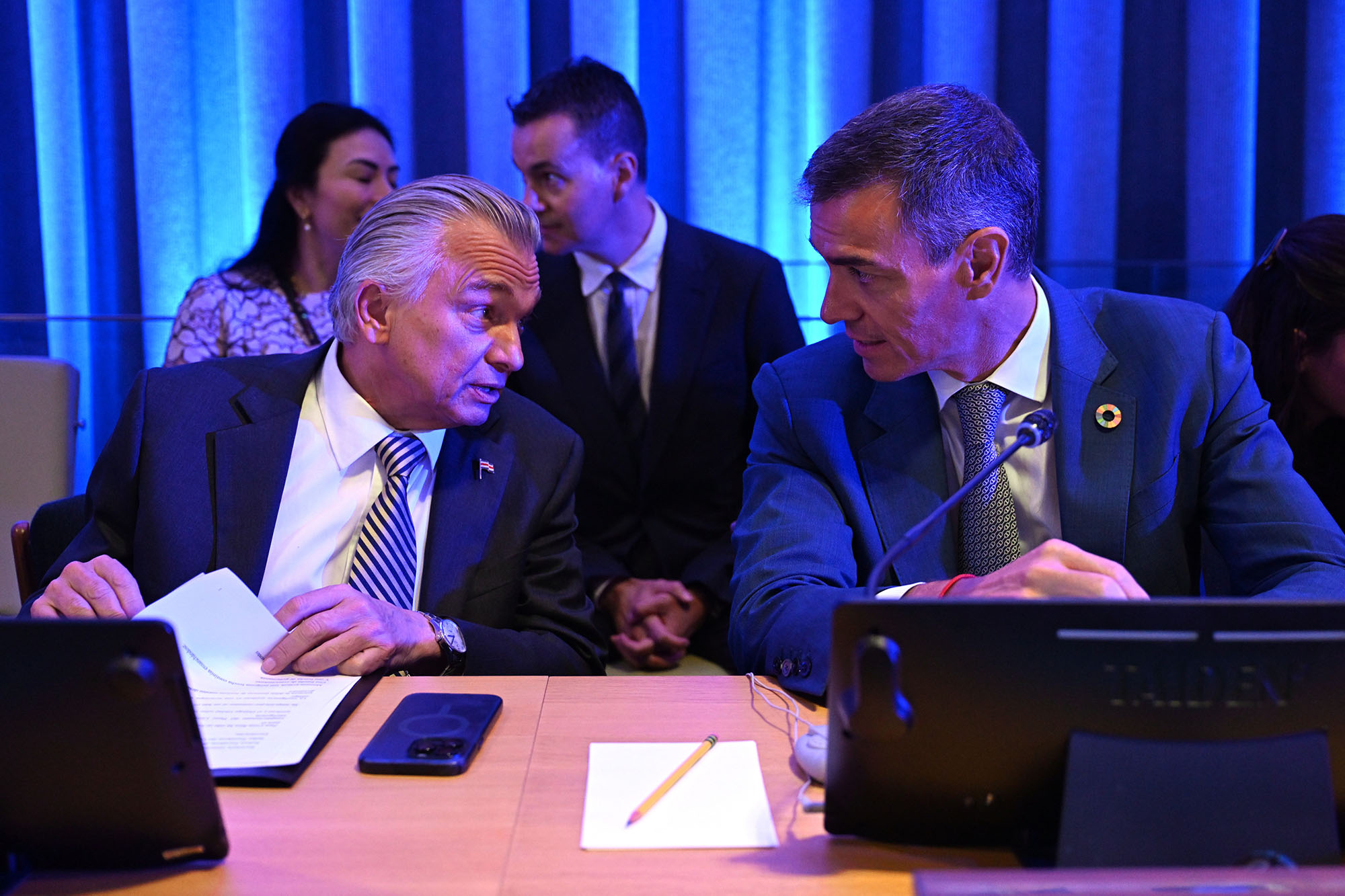 El presidente del Gobierno, Pedro Sánchez, conversa en la espera del inicio del evento | Pool Moncloa/Borja Puig de la Bellacasa. Nueva York (Estados Unidos) - 25.9.2025