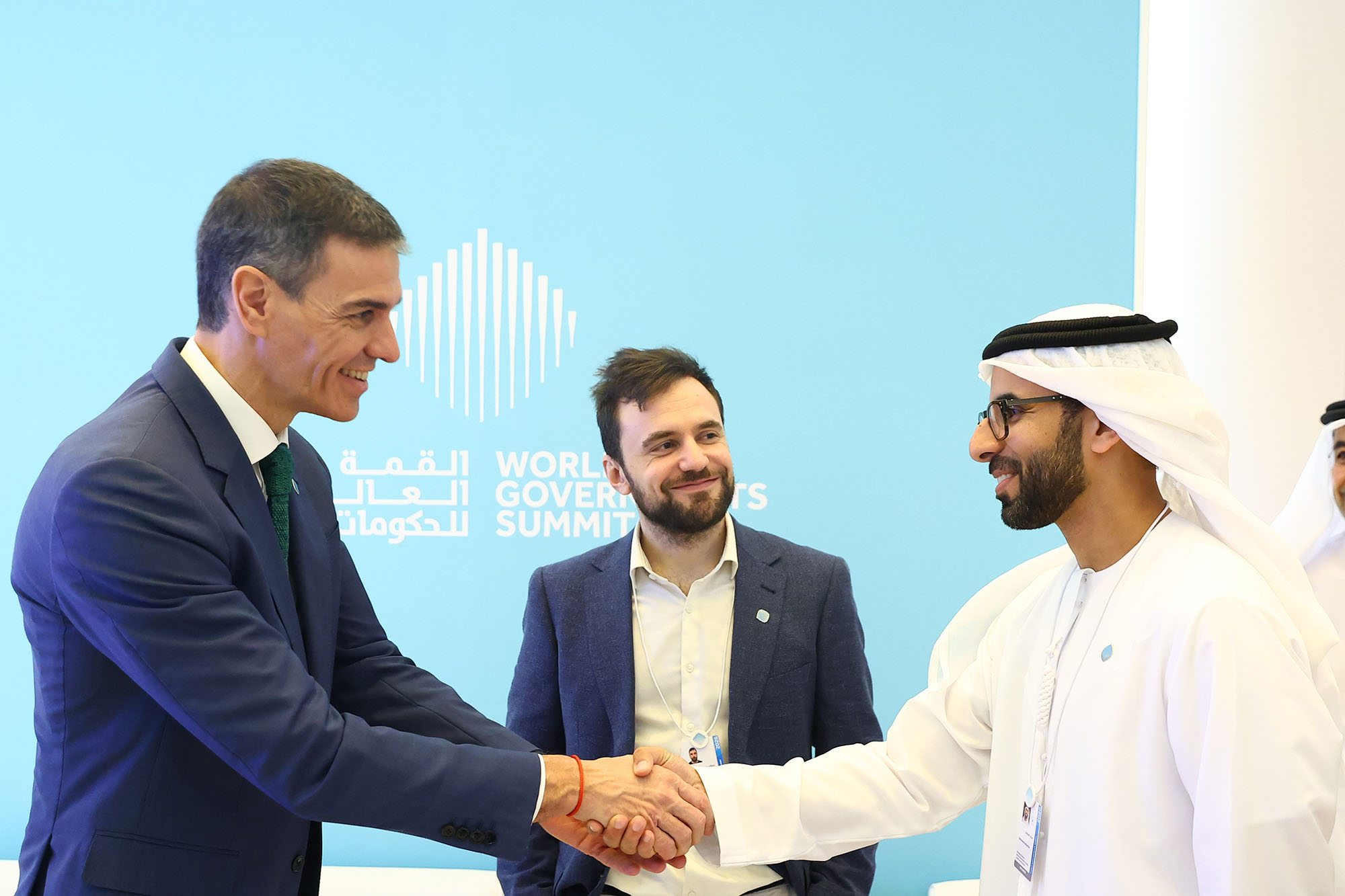 Encuentro con el ministro de Industria y Tecnología Avanzada de Emiratos Árabes Unidos; y presidente de la Compañía Nacional de Petróleo de Abu Dhabi (ADNOC), Sultan bin Ahmed Al Jaber. | Pool Moncloa/Fernando Calvo. Dubái (Emiratos Árabes Unidos) - 3.2.2026